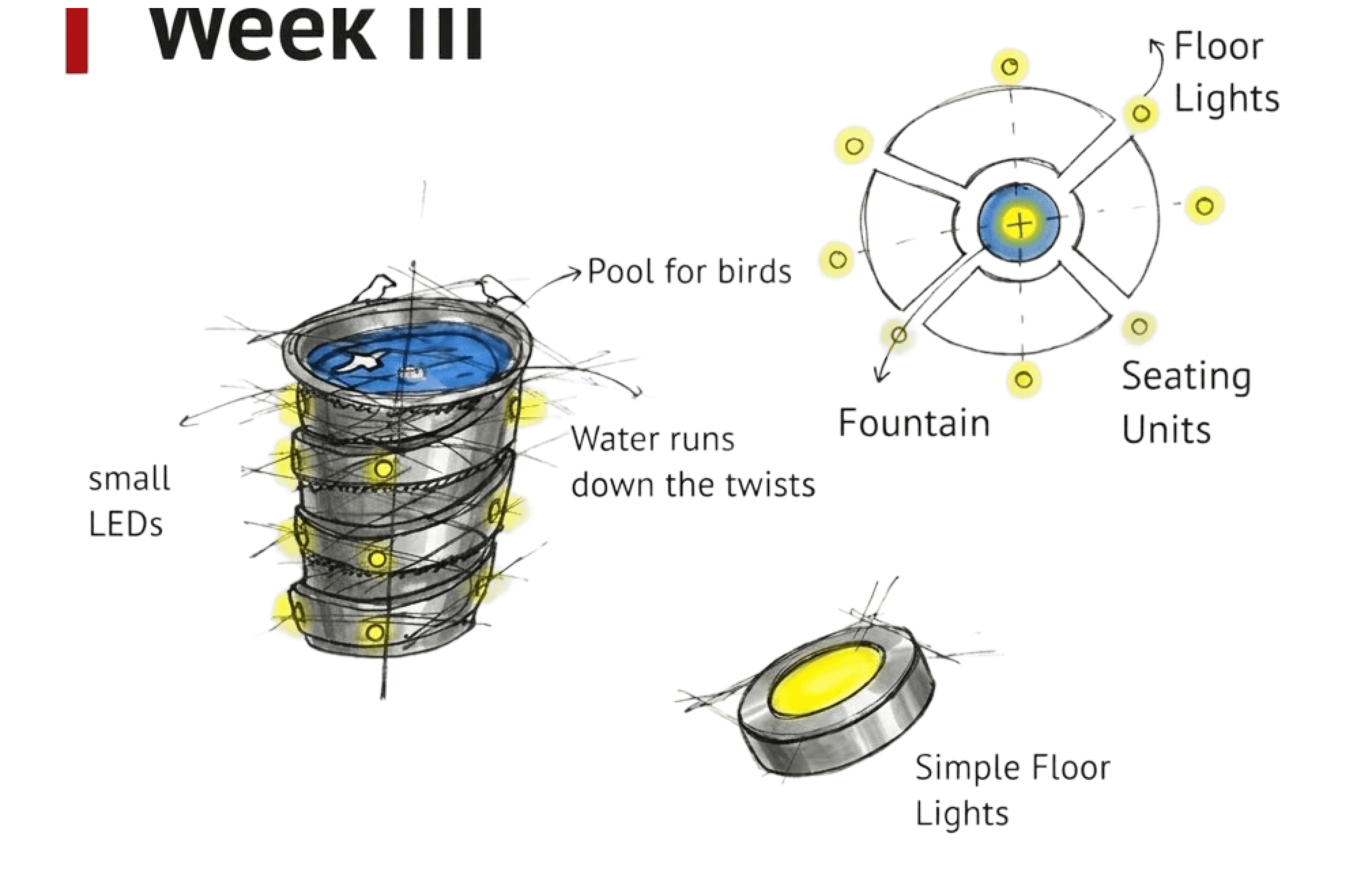 Sketching helped me test bold form directions and spatial ideas early on. It clarified how my general form would be with a refined visual identity before moving into 3D development.