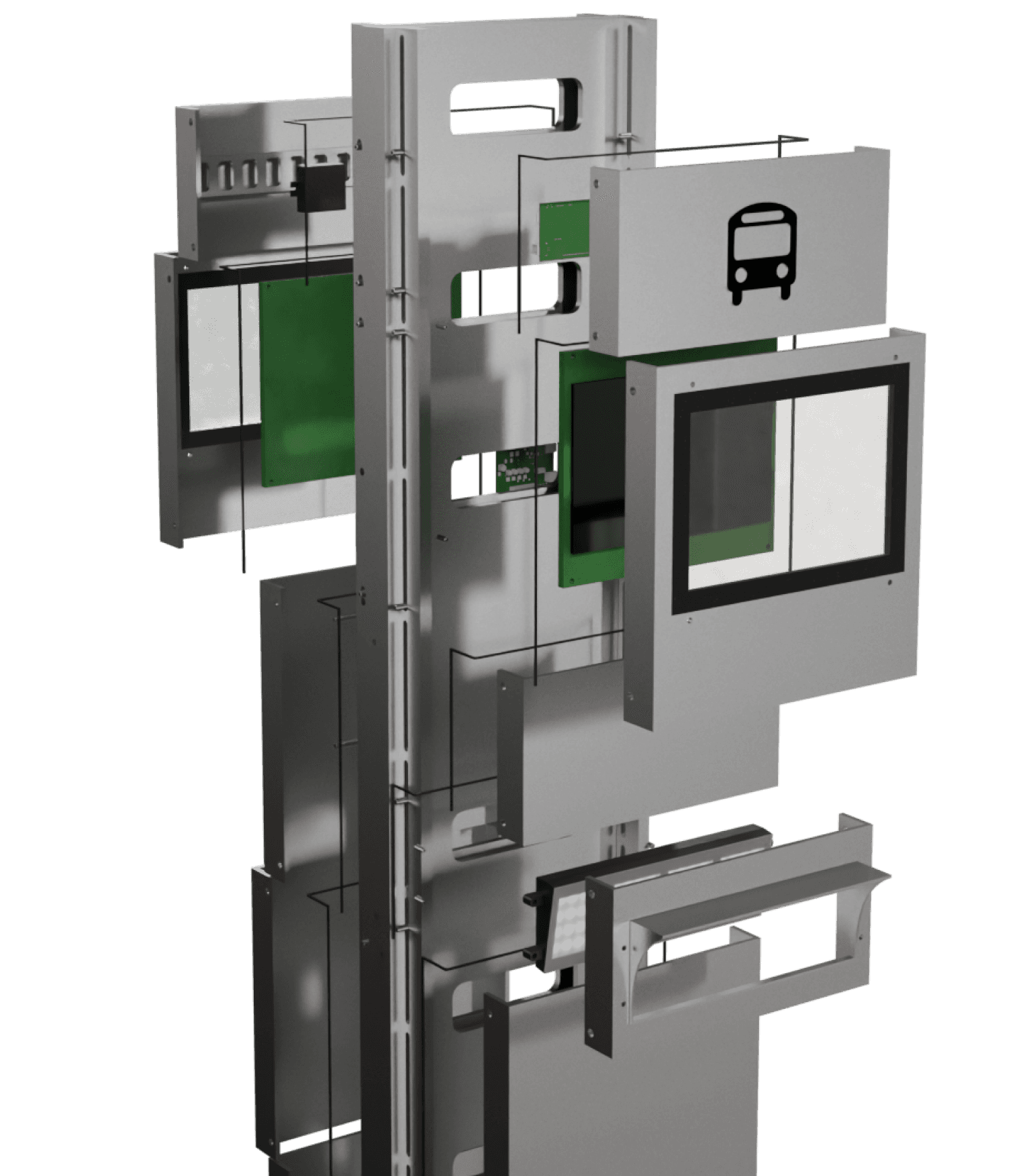 The screen in the bus stop helps people spot it from further away and see the upcoming busses.